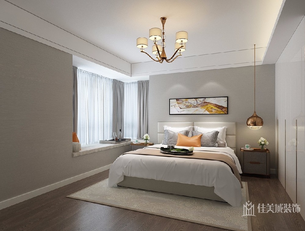 一个现代感的卧室显现出来的是谦逊的外表和优雅舒适的内在的一种平衡,使用的颜色通常是坚忍的性质,灰色和白色为主导的色系