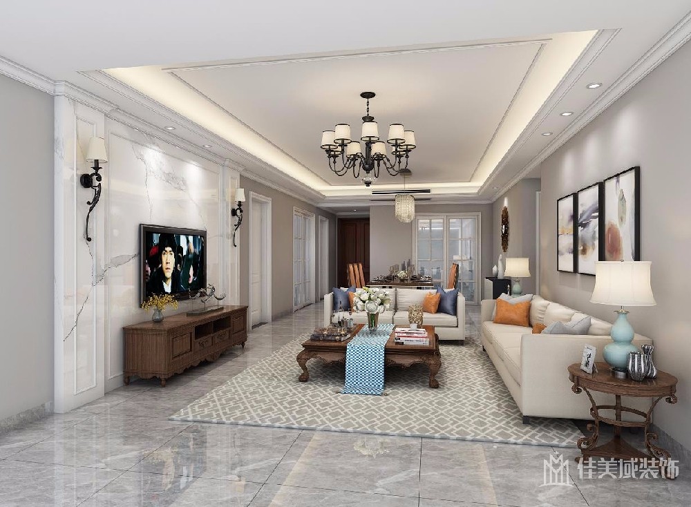 内的硬装基础本着简约直白的线条和色彩处理,表达出一种现代风格应该有的直接,独特3个圆环吊灯