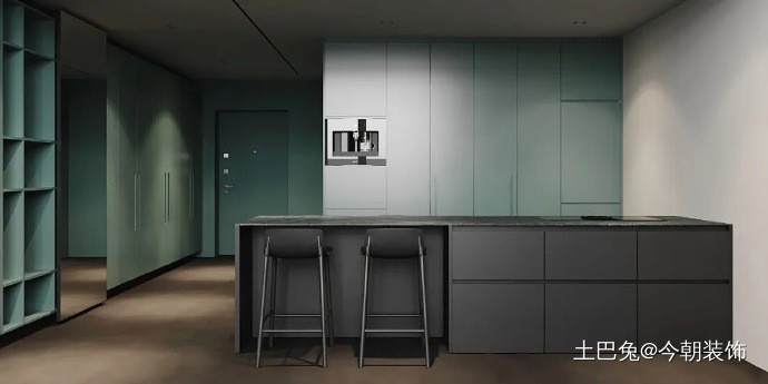 本案例的常住人口是四口人,大家居住在一起,分别设置了两居室,基本的色调都以灰色调为主,但家具使用了墨绿色,为这个空间增添了一丝活力,符合业主的气质。