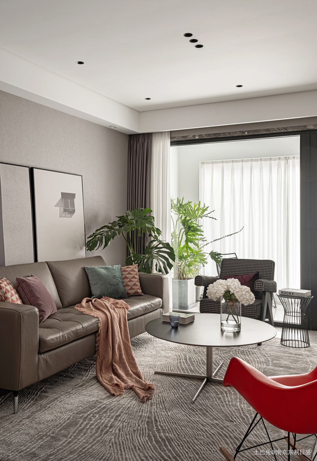 富有纹路的灰棕色地毯、柔软大气的皮革沙发、轻巧的茶几共同构筑了一个富有生活气息的场景。在这里,没有繁复的技巧与装饰语言,却能营造出层层叠加的精致韵味。