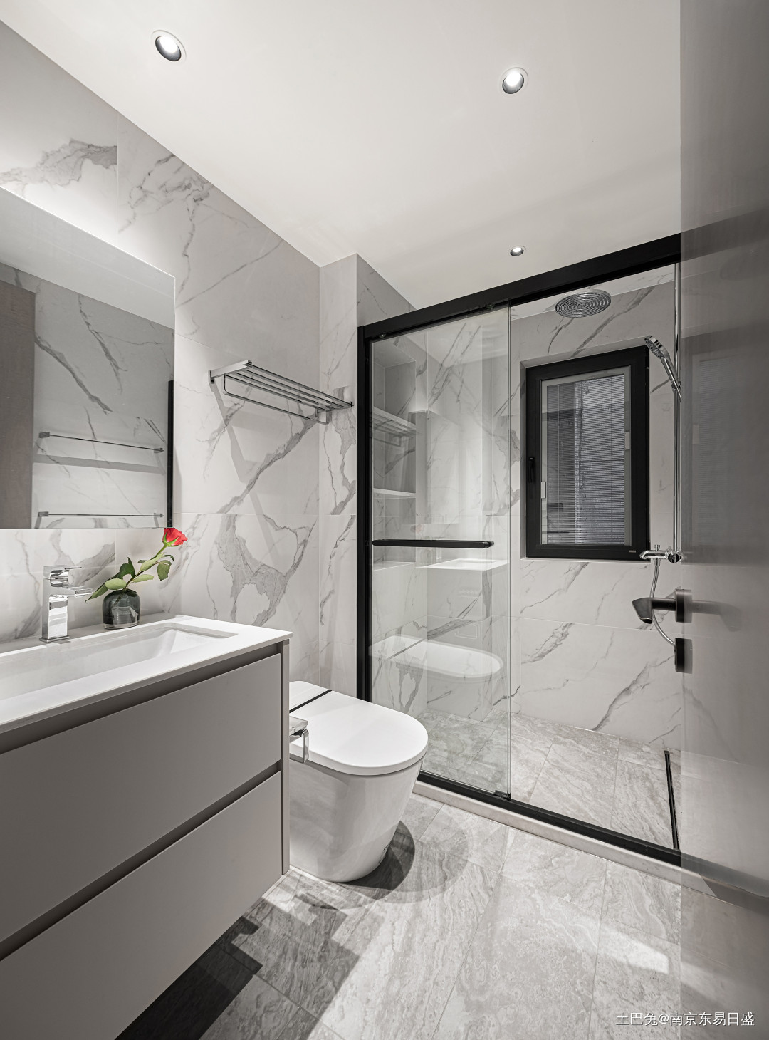 通过灰白的石材地面与隐藏式灯带的巧妙运用,中和了硬朗的线条,恰到好处的瓷砖纹路呈现出克制与平衡、表像和内在的矛盾统一,充分表现出丰富而纯粹的设计本质。