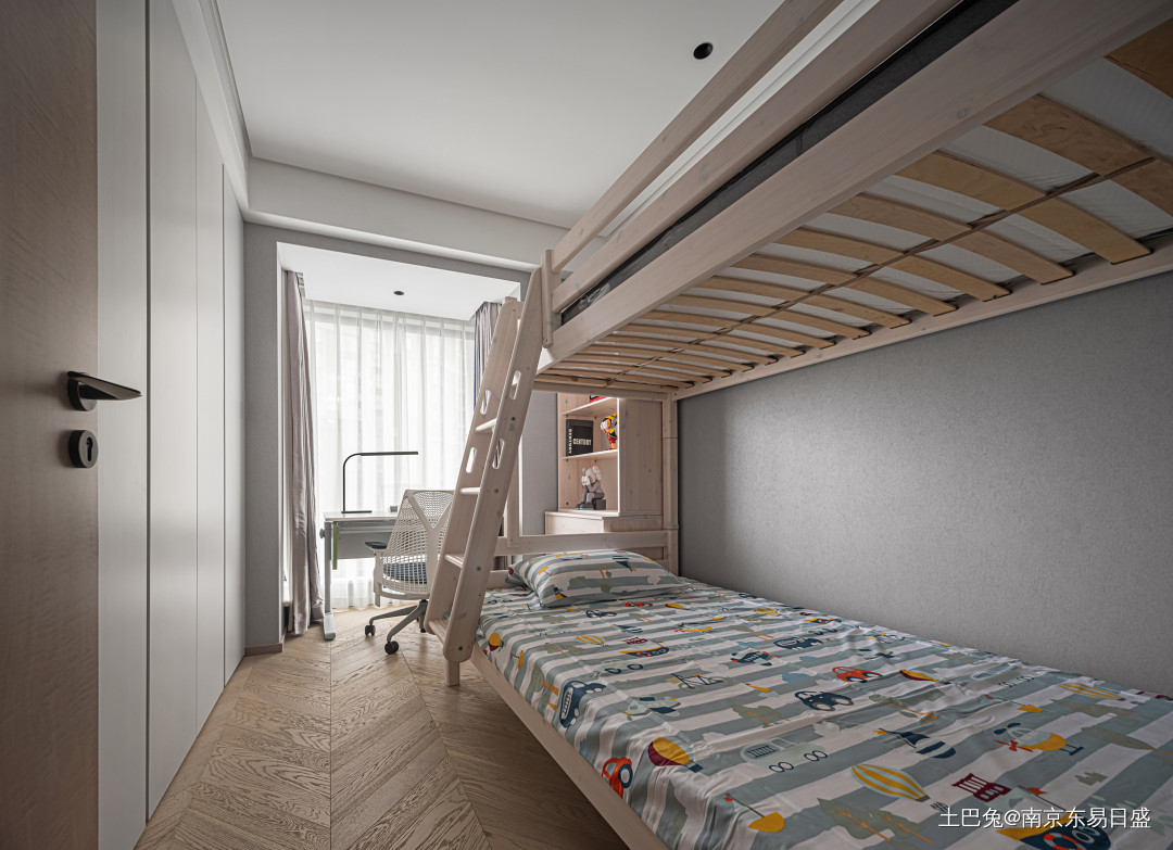上下铺设计提高了空间的利用率,满足家里有两个小朋友的空间需求。