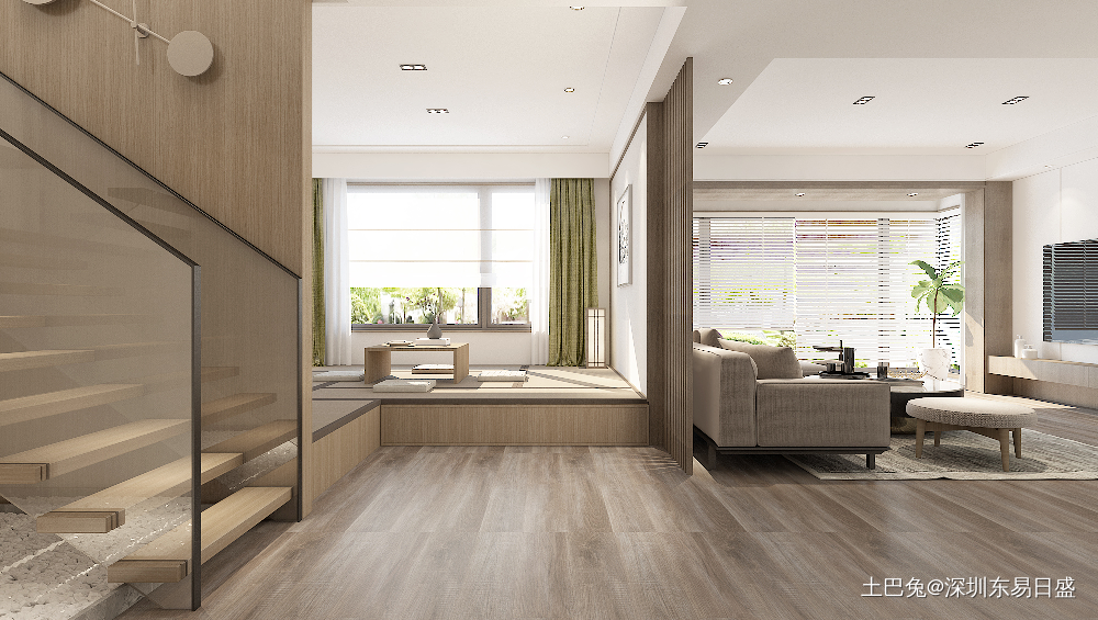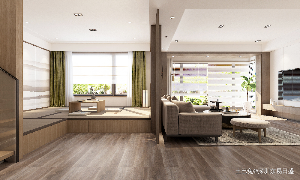 榻榻米设计,三五好友或者家人喝茶晒太阳聊天,得闲小憩。