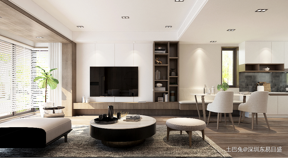 不用做太多的吊顶,木质柔软质感,以及布艺沙发,加上充足的自然光源与绿植,温柔治愈系。