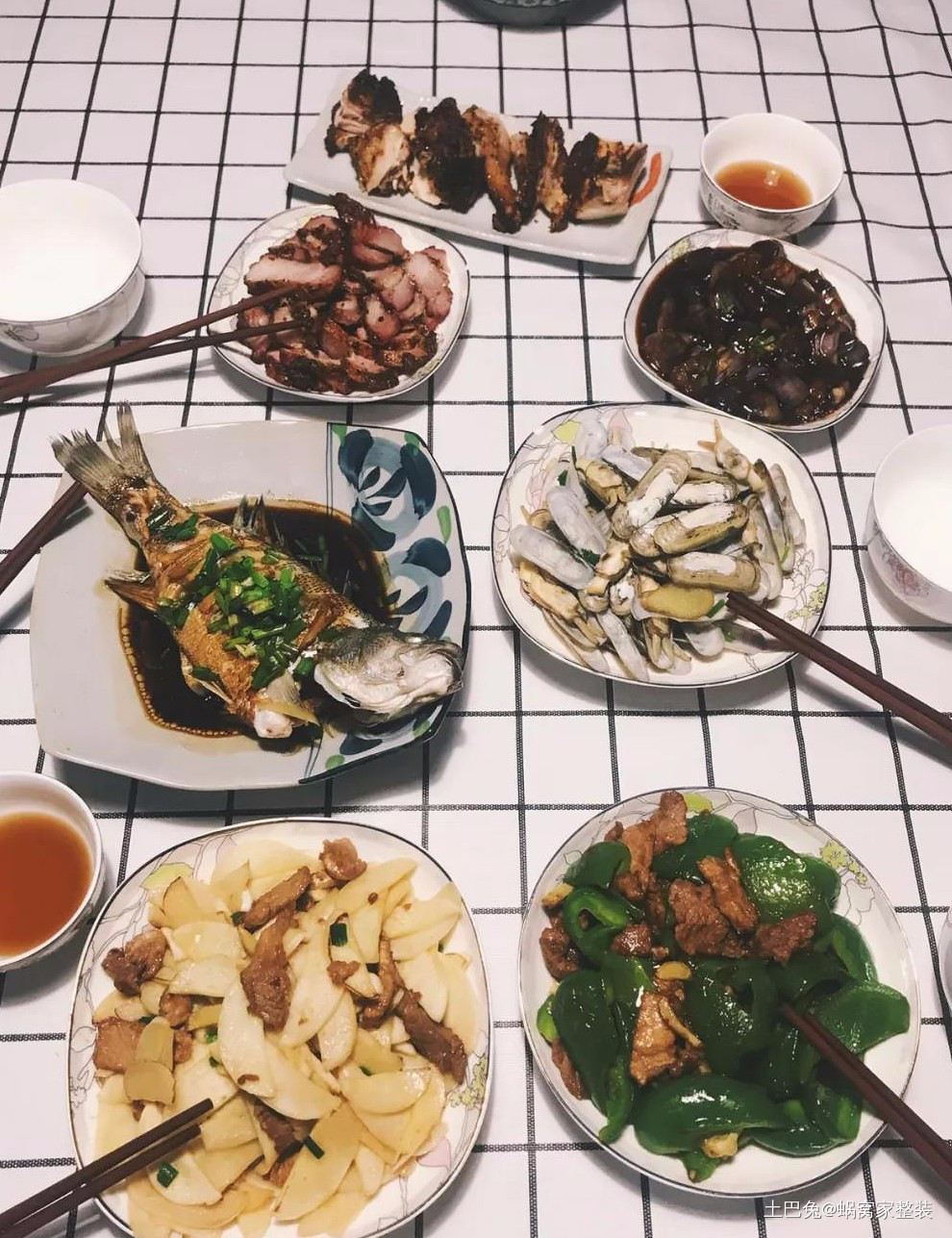 原木餐桌铺上格子桌布,享受四季三餐