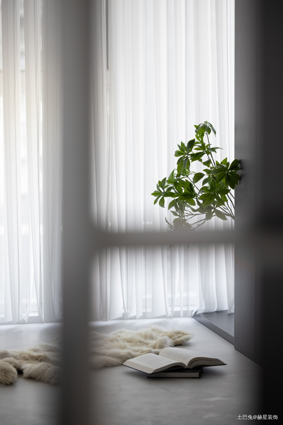 阳台采用最近很流行的梦幻纱帘,极具质感。
