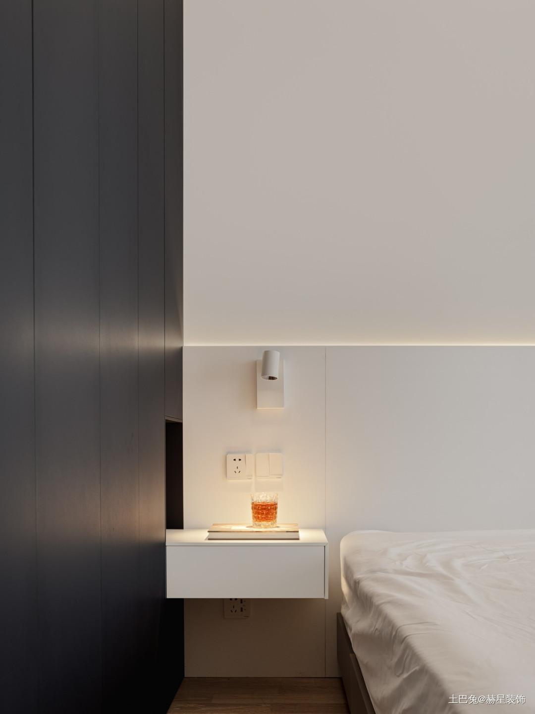 床头柜与衣柜全部定制,做一体式。