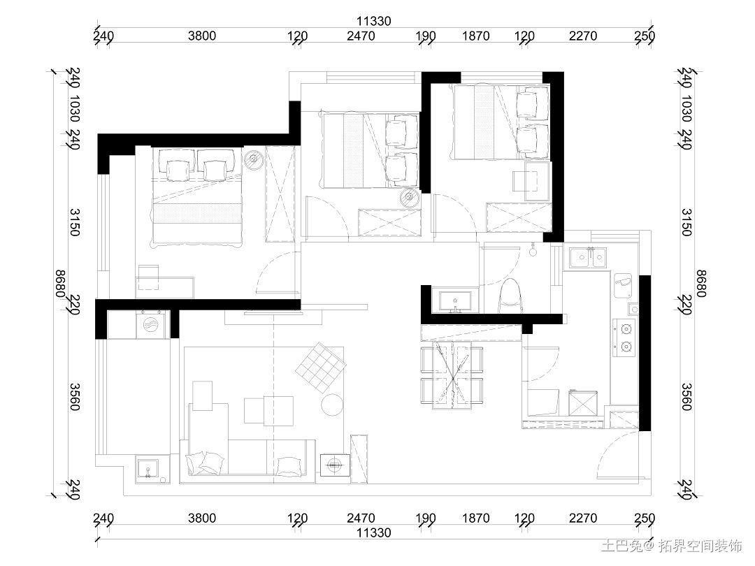 这是一套现代简约风格的案例。有三个房间,整套屋子装修得都非常好,最有特色的是厨房和餐厅的装修,合二而一,令有效的空间发挥了最大的作用。