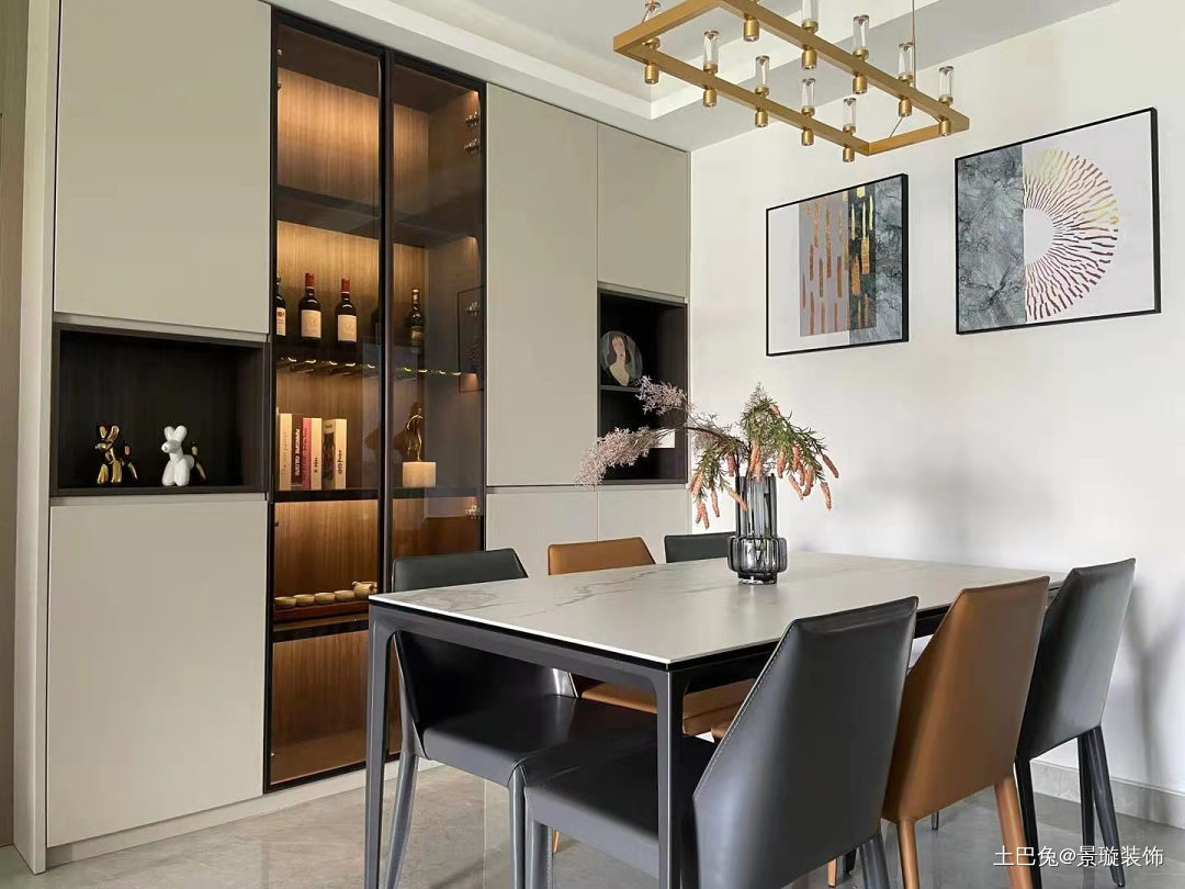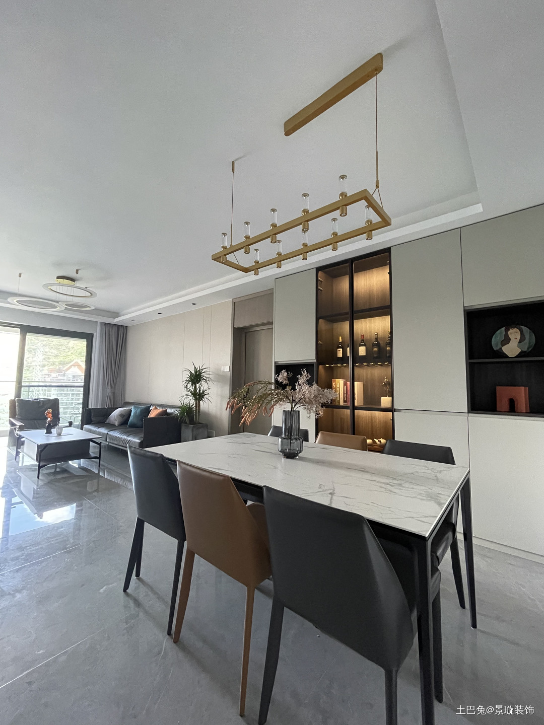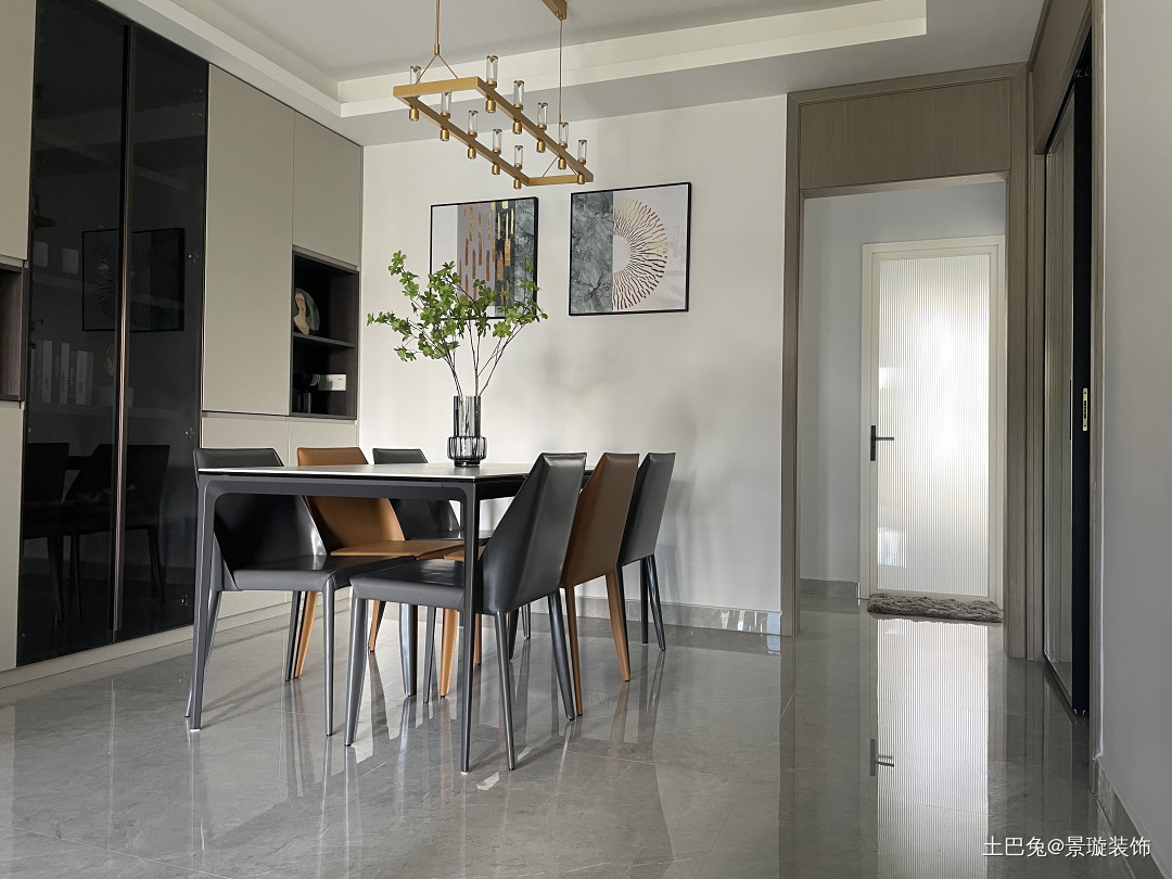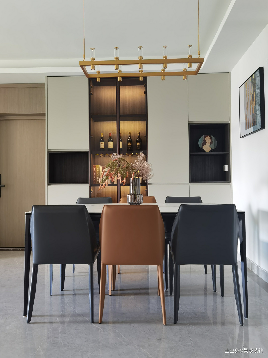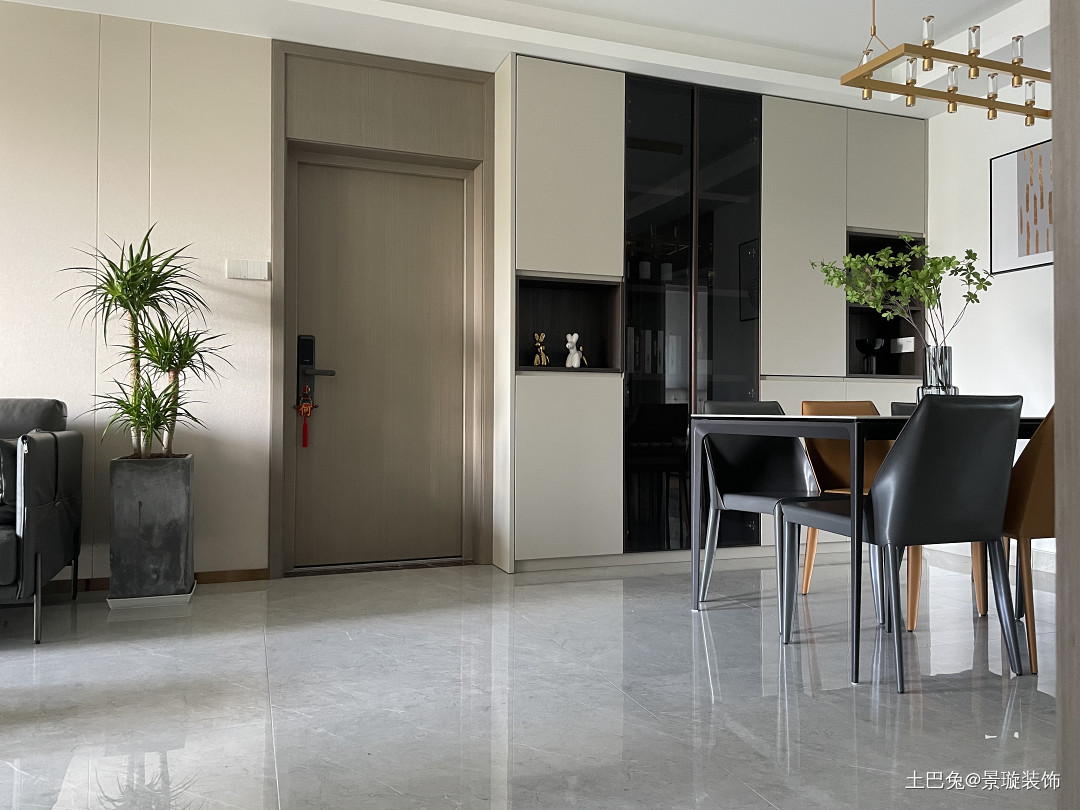 客餐厅所有的门都是一门到顶,采用极简的木质背景,空间体现出既现代又简约的风格。