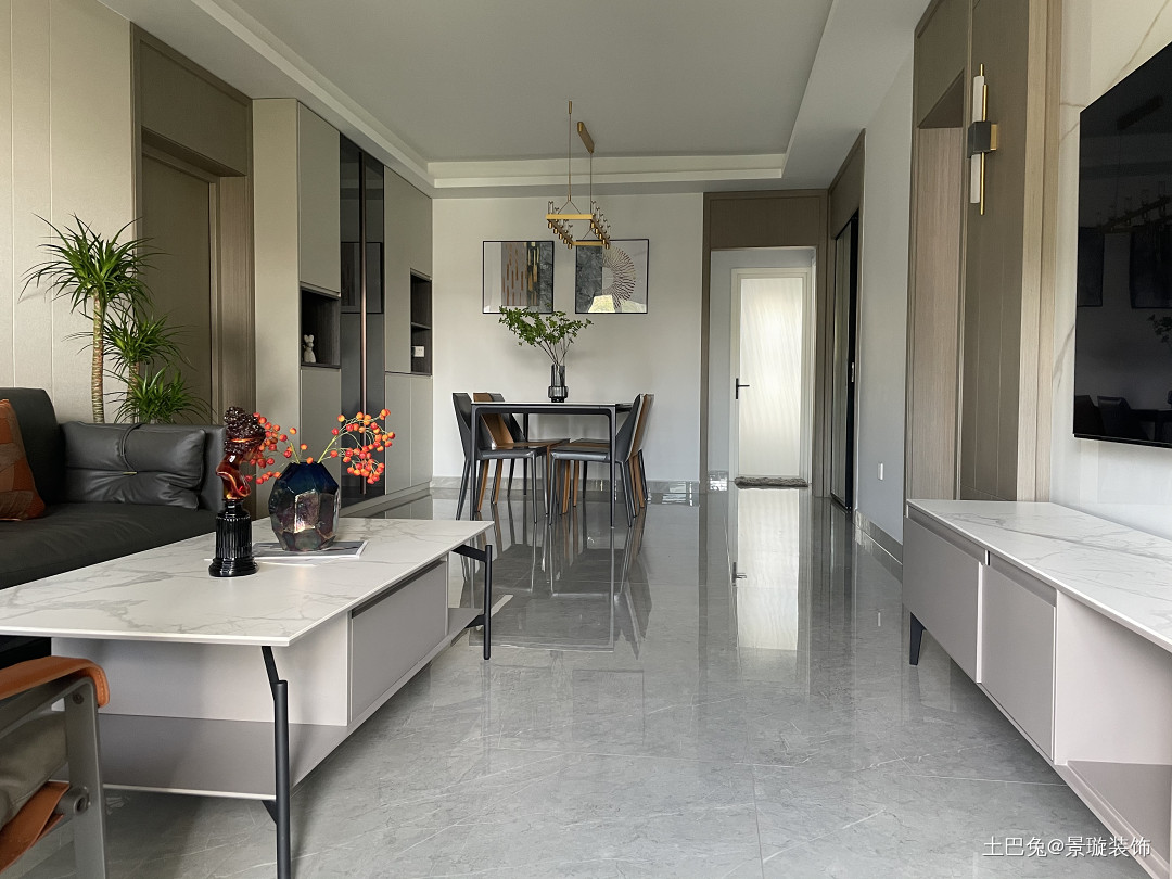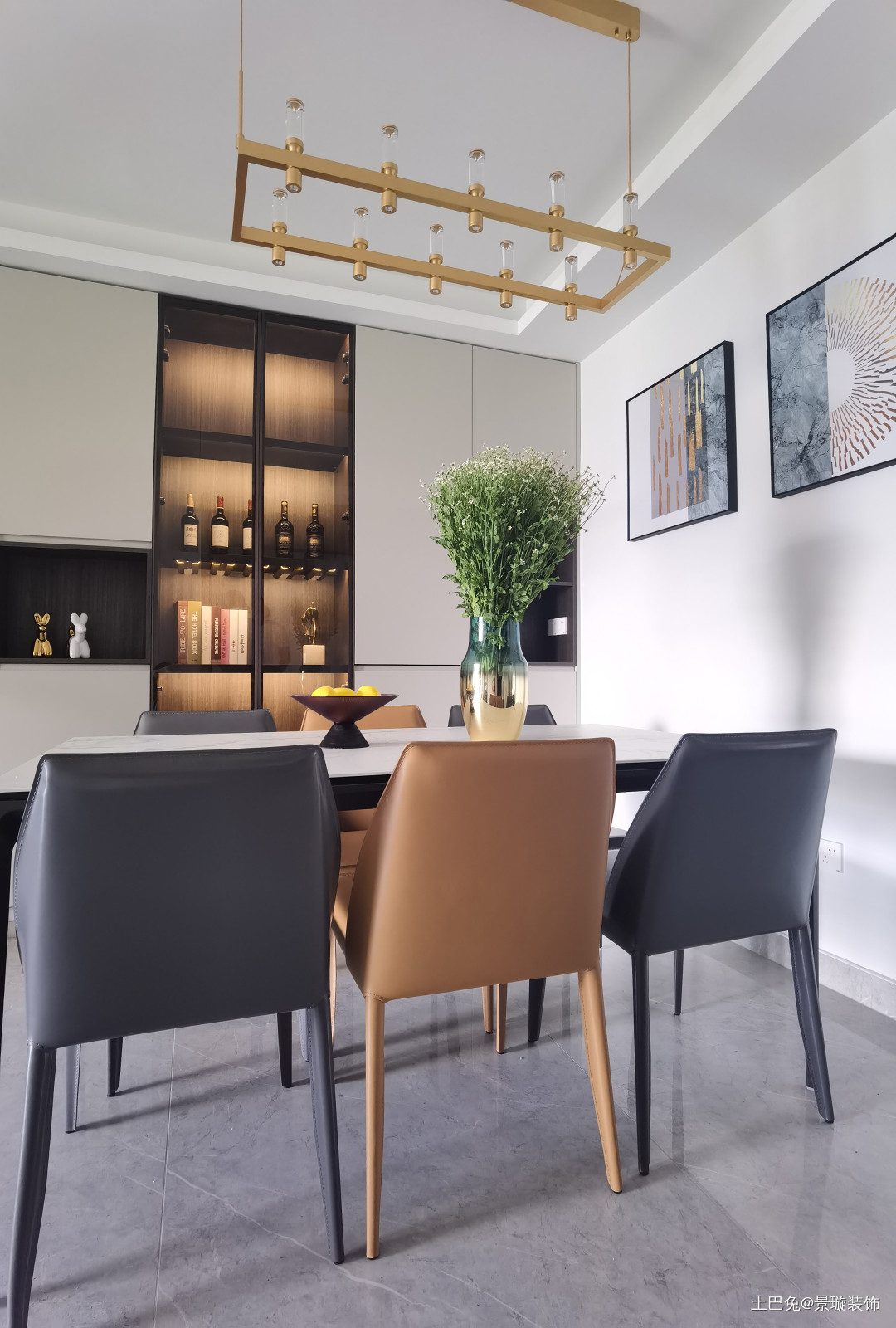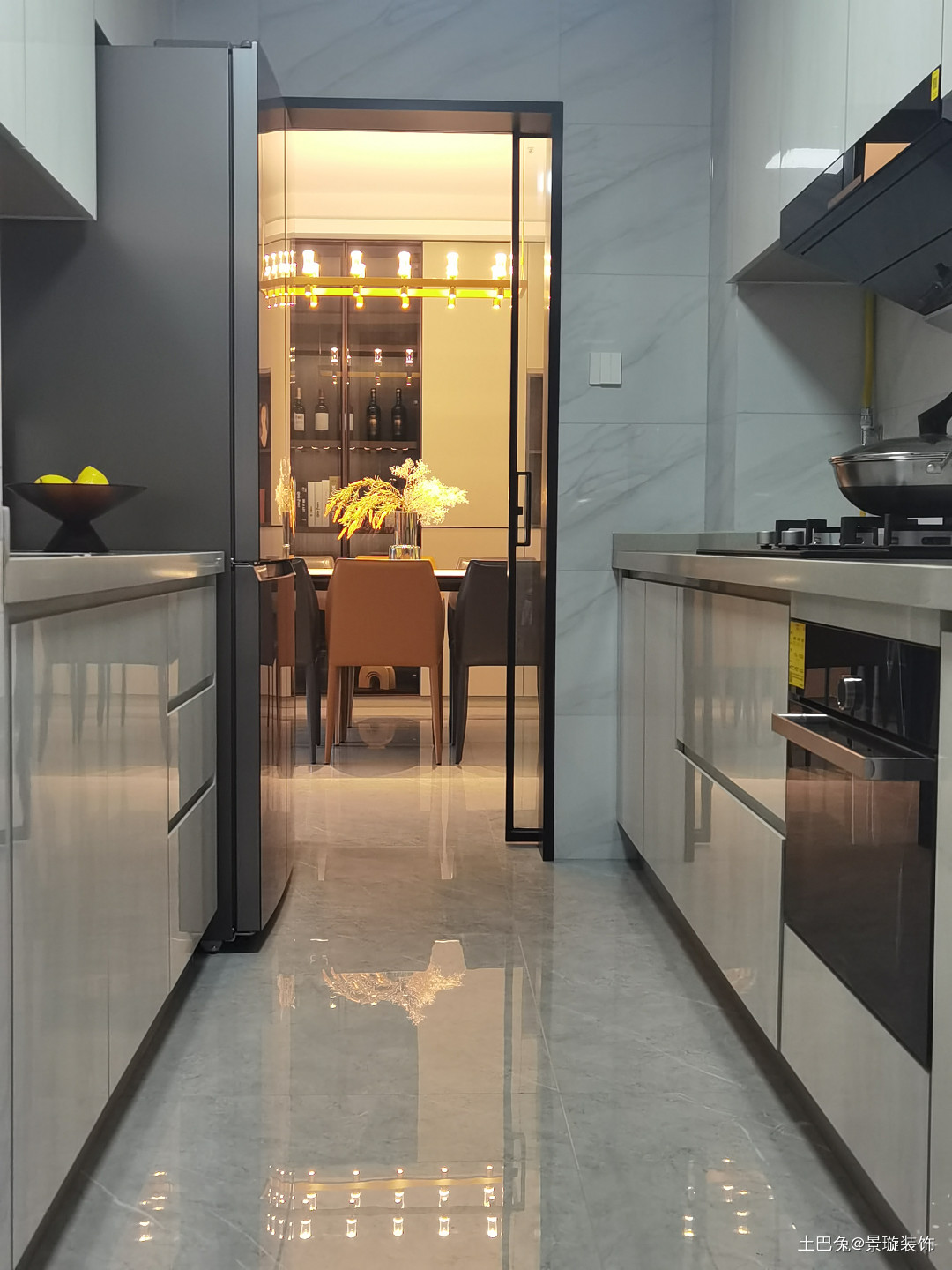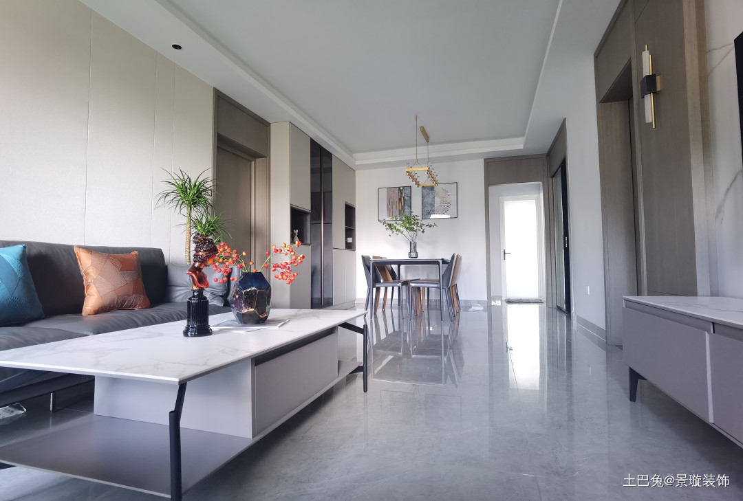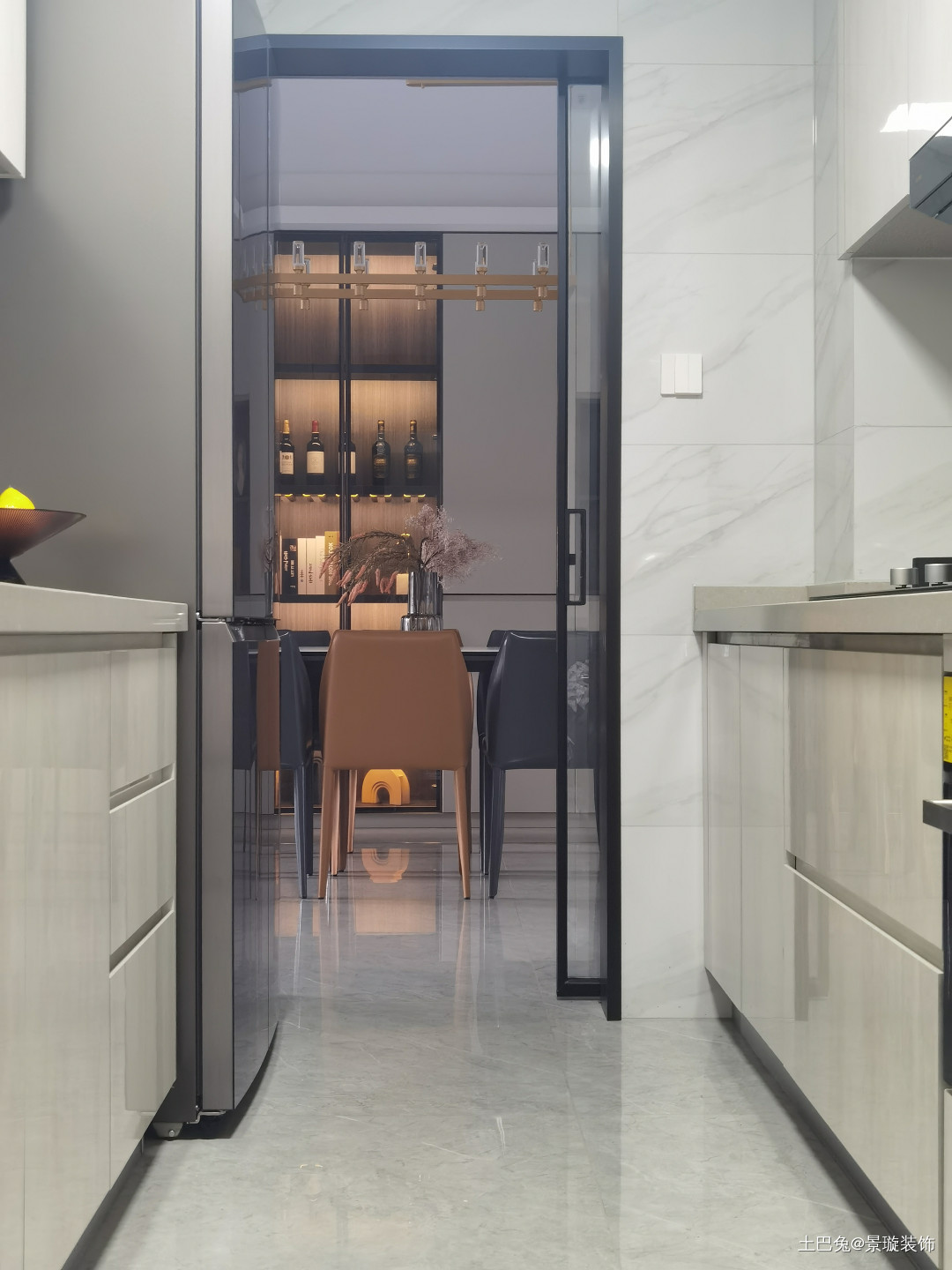 客餐厅所有的门都是一门到顶,采用极简的木质背景,空间体现出既现代又简约的风格。