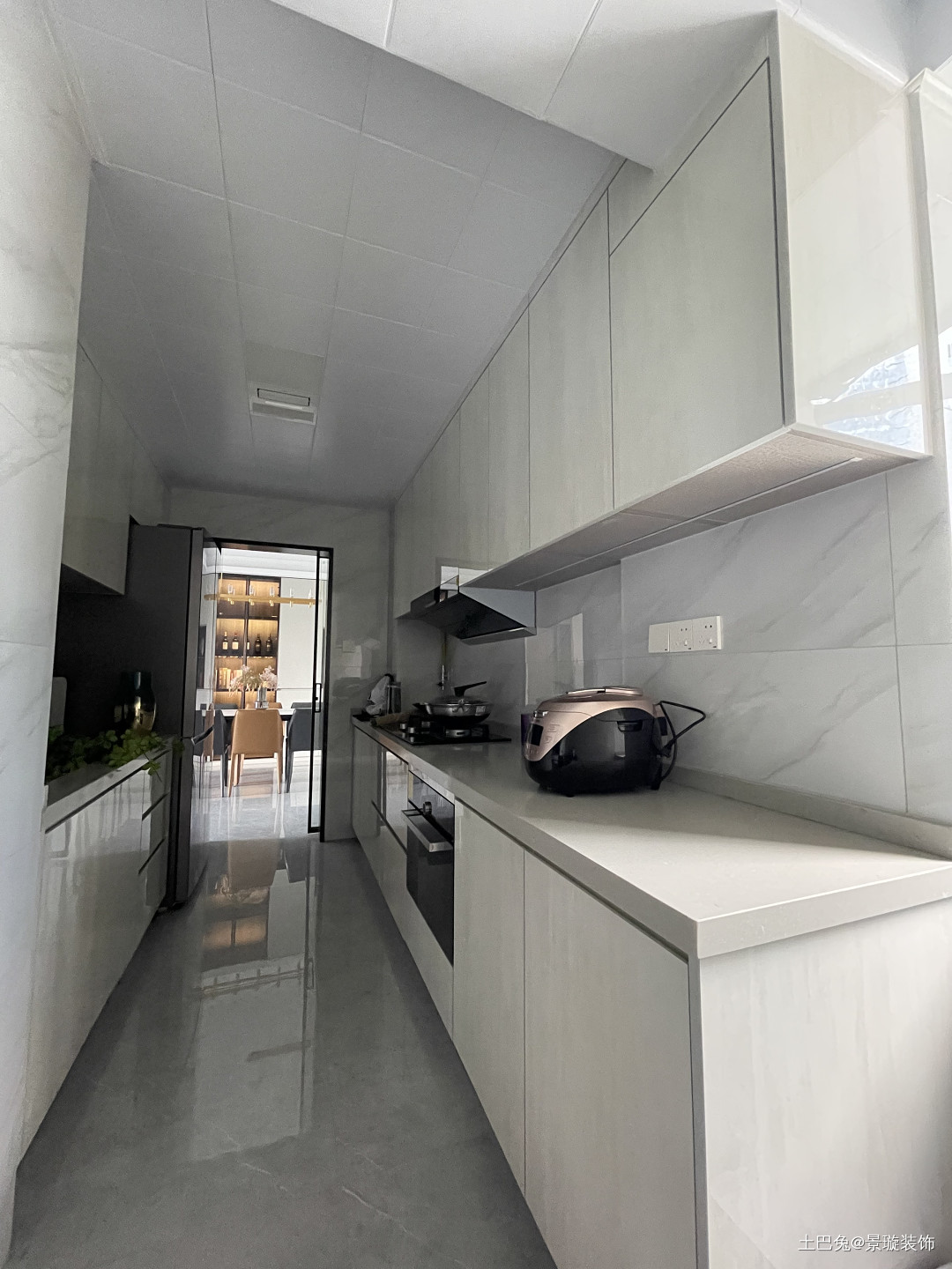 将生活阳台归纳到厨房空间,增加了厨房的操作台面及收纳空间。