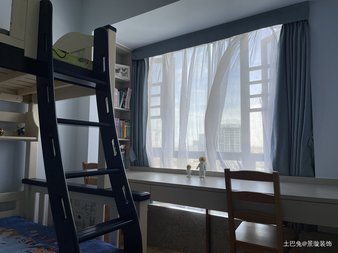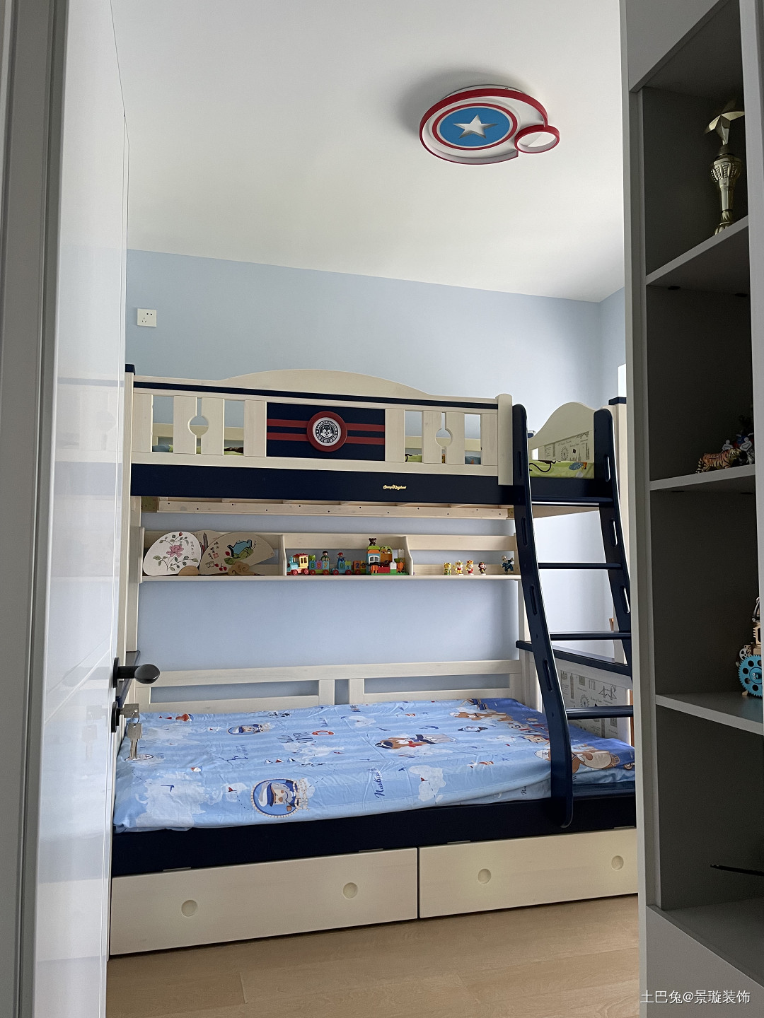 业主家有两个小孩,儿童房按照小朋友喜欢的颜色,在满足居住的情况下采用松堡王国的上下床布置,体现整体空间的童贞,并且打造了丰富的收纳空间。