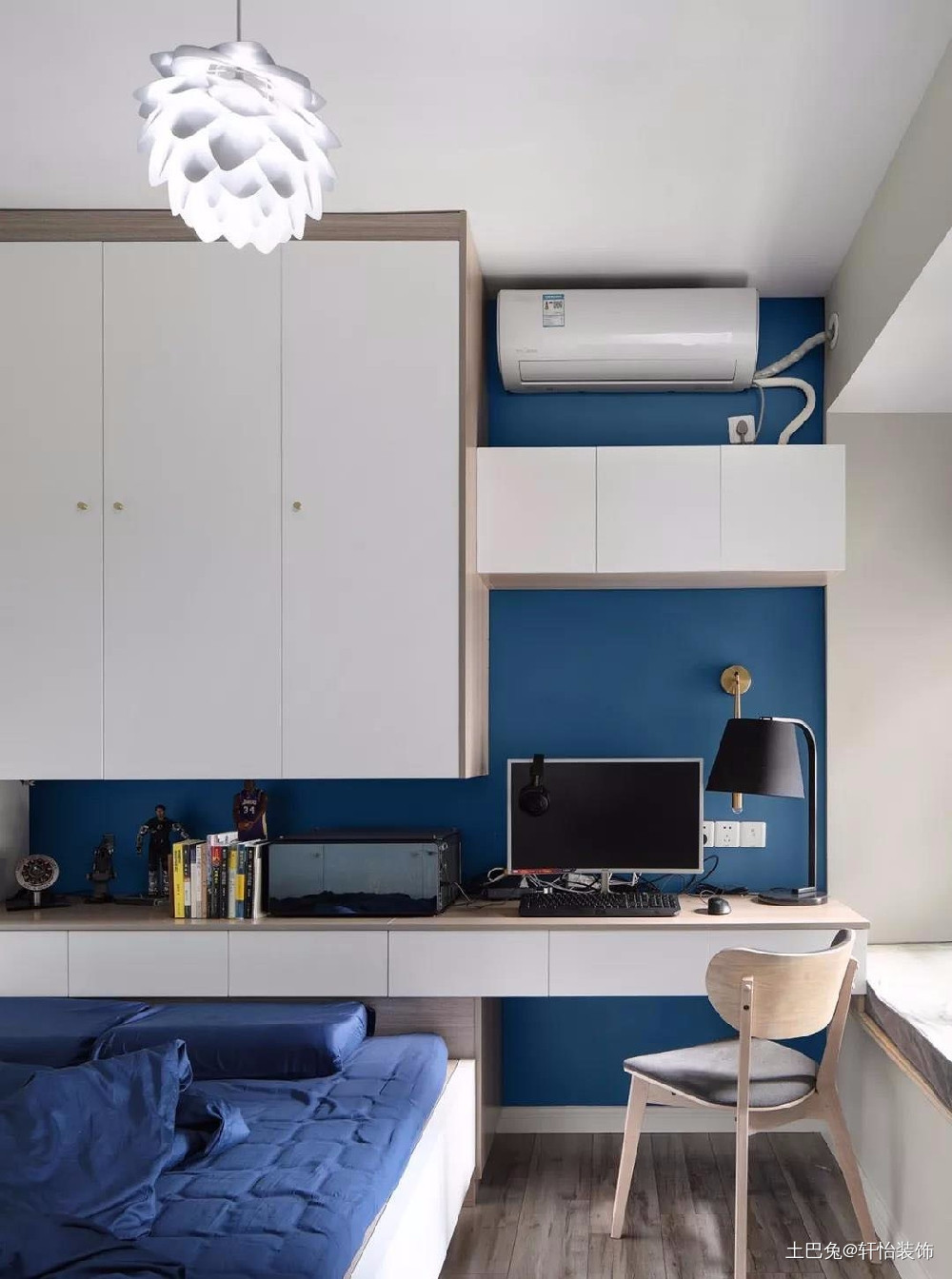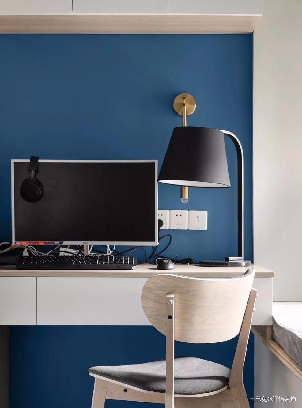 定制书桌,蓝色背景墙与家具呼应整屋色调