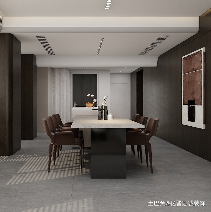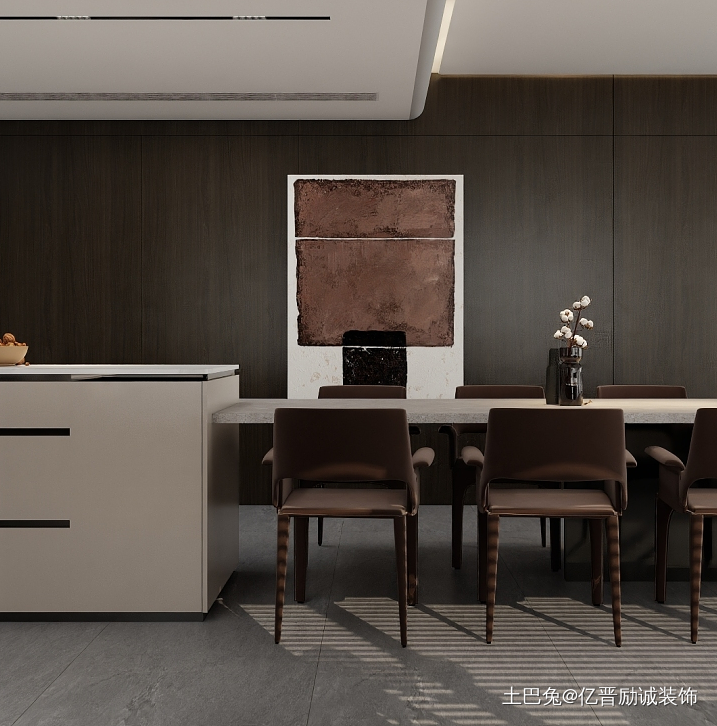 餐厅以现代简约风格为主,整体以低饱和度色系为主。沉稳大气。