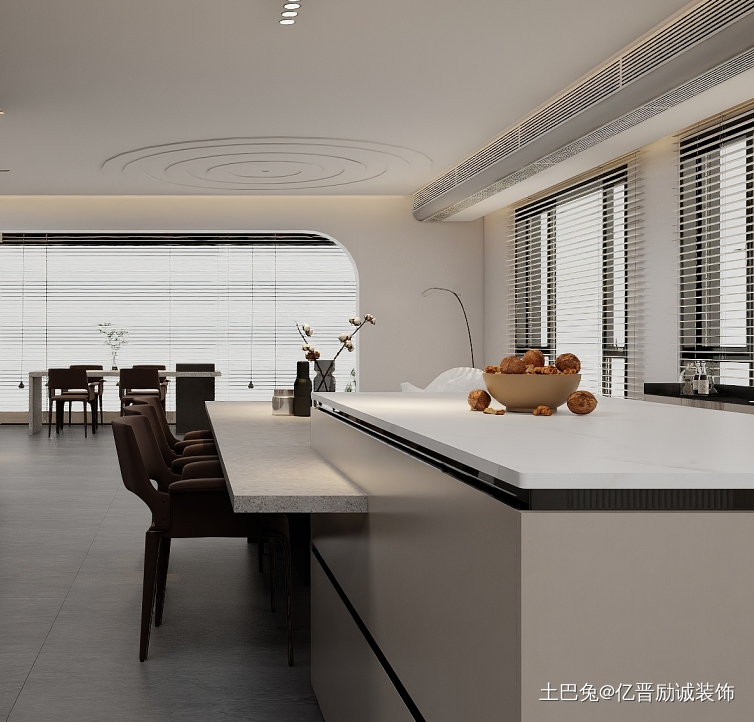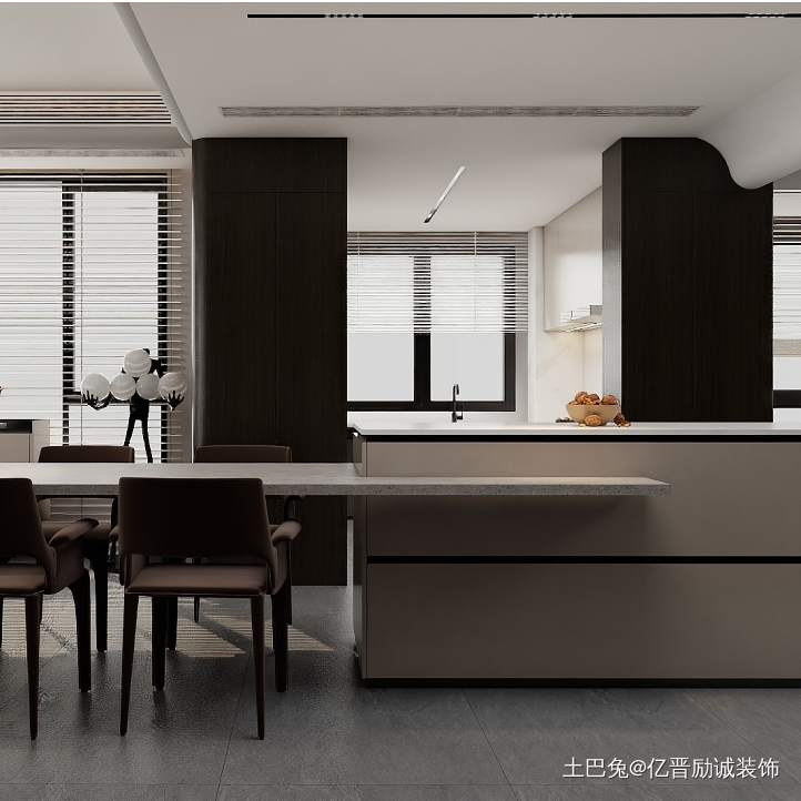 定制中岛吧台与岩板餐桌相连,打造出更多可能性的用餐区域