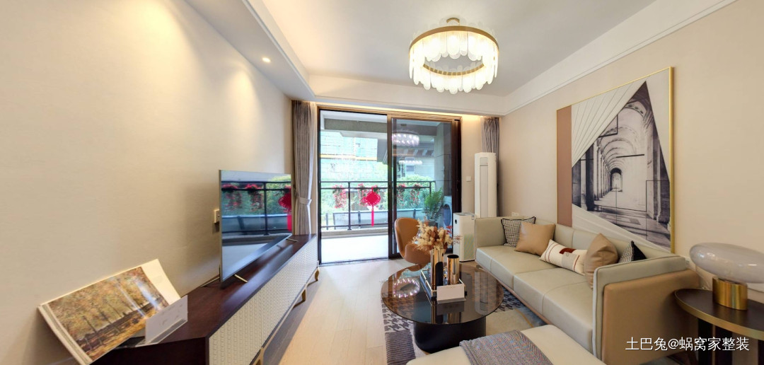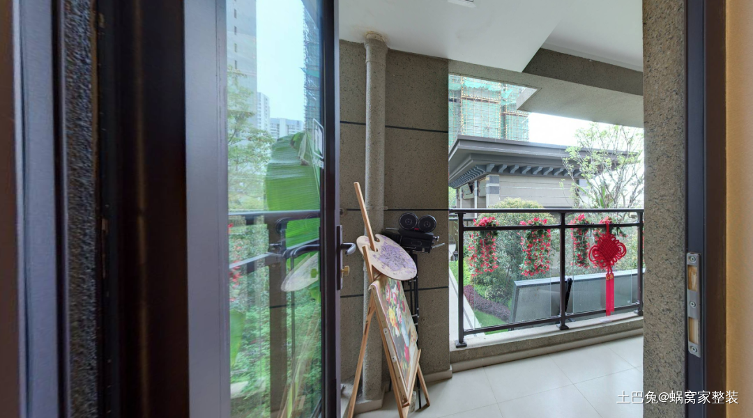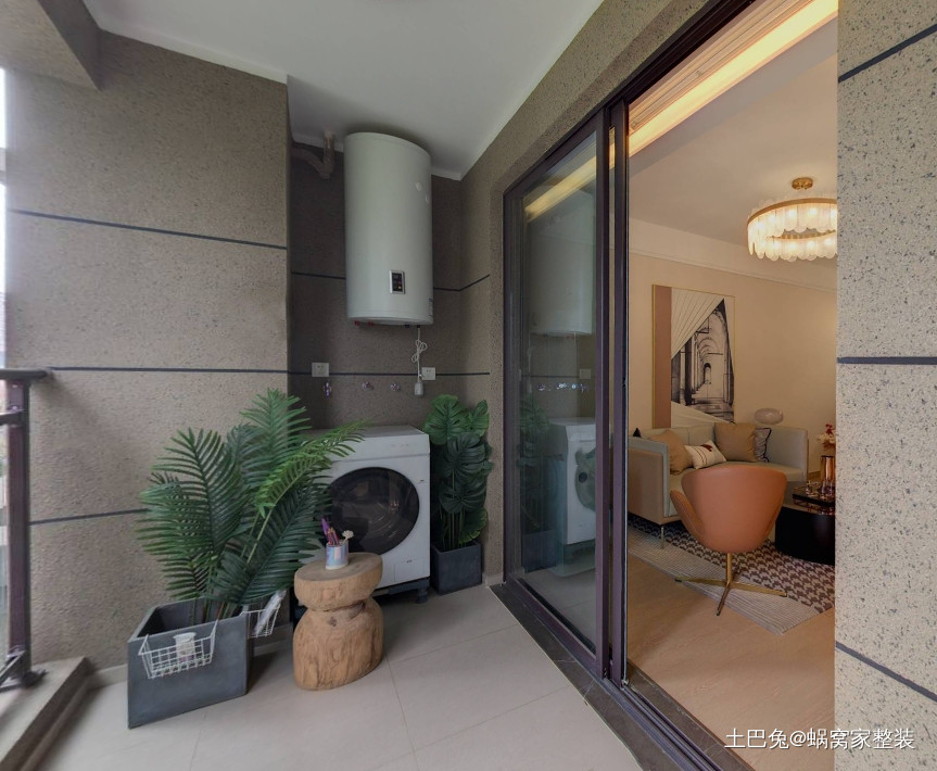 阳台采用玻璃门作为隔断,保持室内采光的同时又能合理隔断空间。同时利用凹陷位置添置洗衣机,更加符合生活动线~
