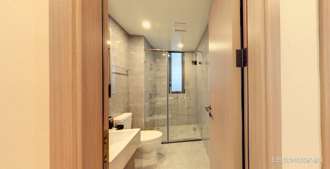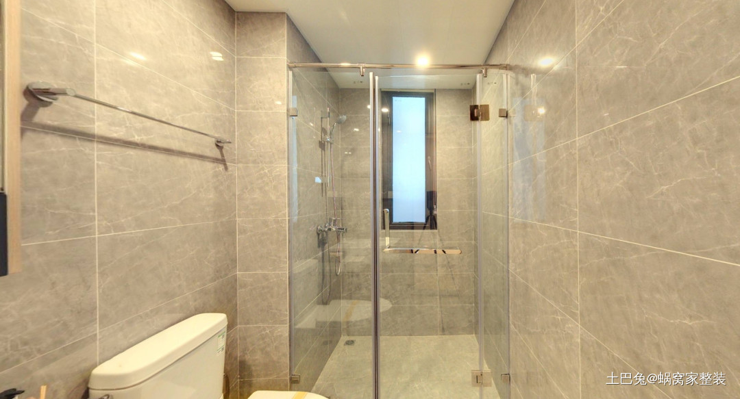 卫生间安装玻璃门划分干湿区域,透明的玻璃一方面能在不影响空间美观的同时满足分区的需求,另一方面容易清洁且耐热耐脏,透光性非常好,不会影响采光。