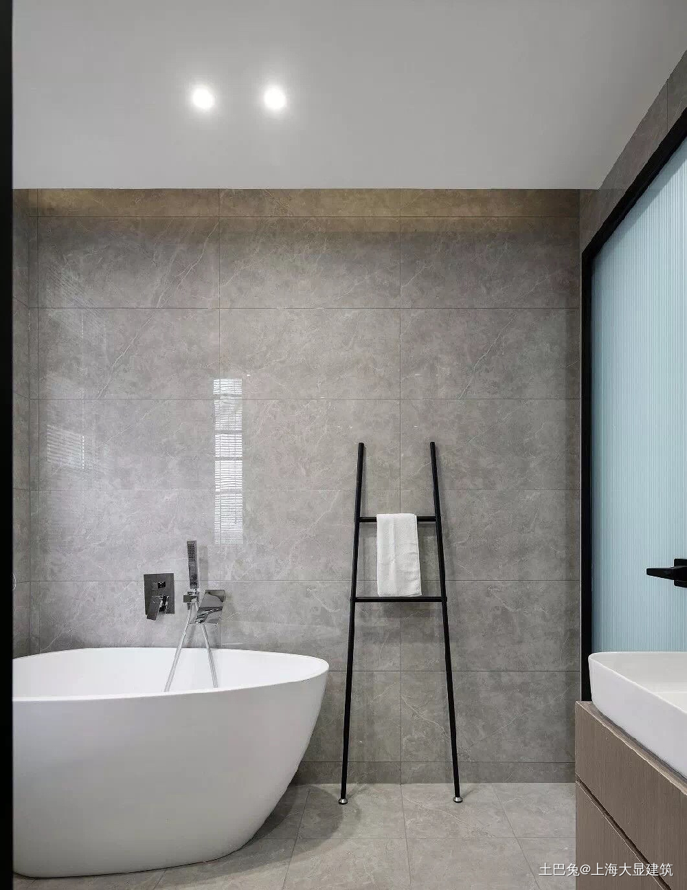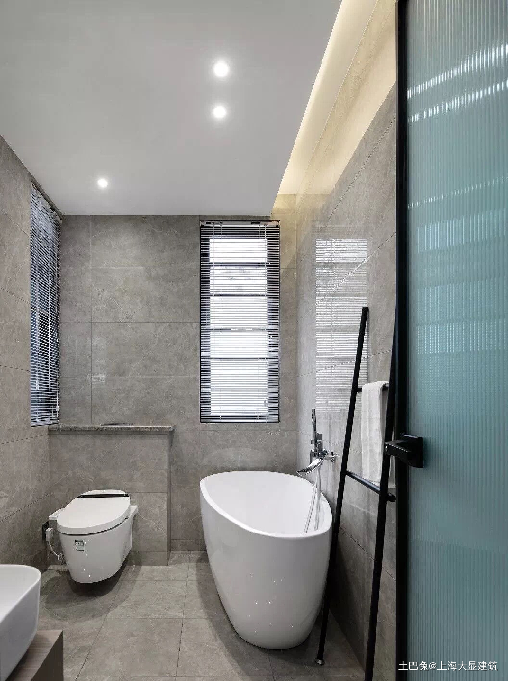 马桶采用入墙式,背后的墙体可用作收纳,颜值和功能并存。