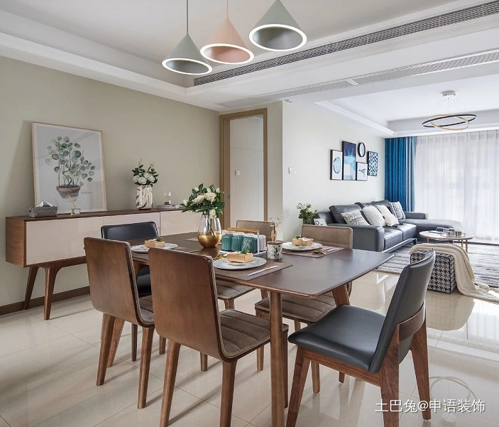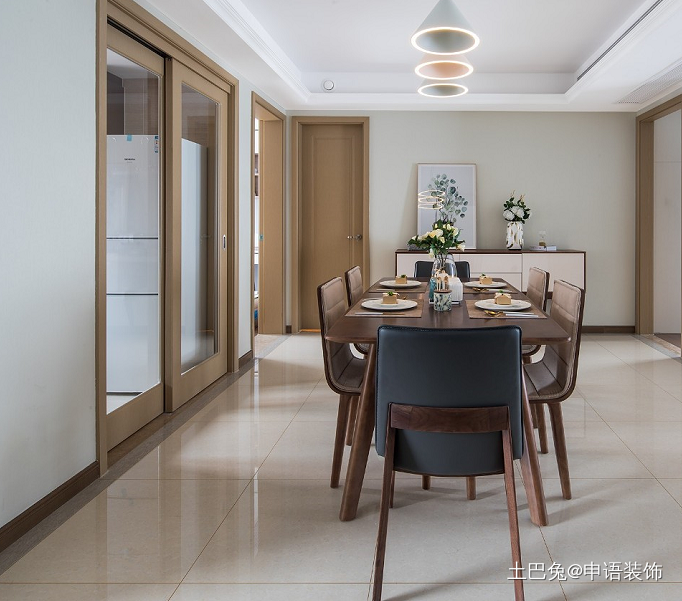 餐桌四周都留出了足够宽敞的通行距离,这种洄游的动线,对于居家生活来说更加合理。