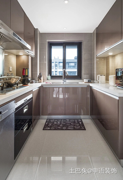 地面墙面及橱柜都是高光面,看上去更有质感,而且也更方便日常打理。