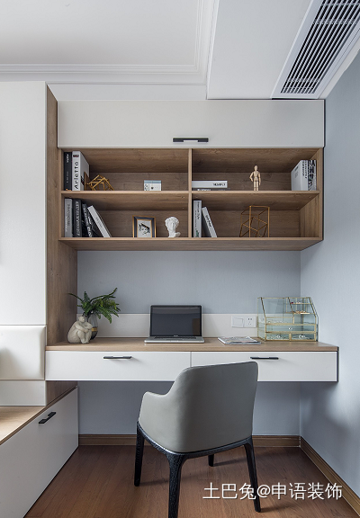 书房和榻榻米可是说是最佳CP组合,阅读、收纳或做客房,轻松实现一房多用,原木有着天然的纹理,与白色的搭配,自然又简洁,是不会出错的搭配。