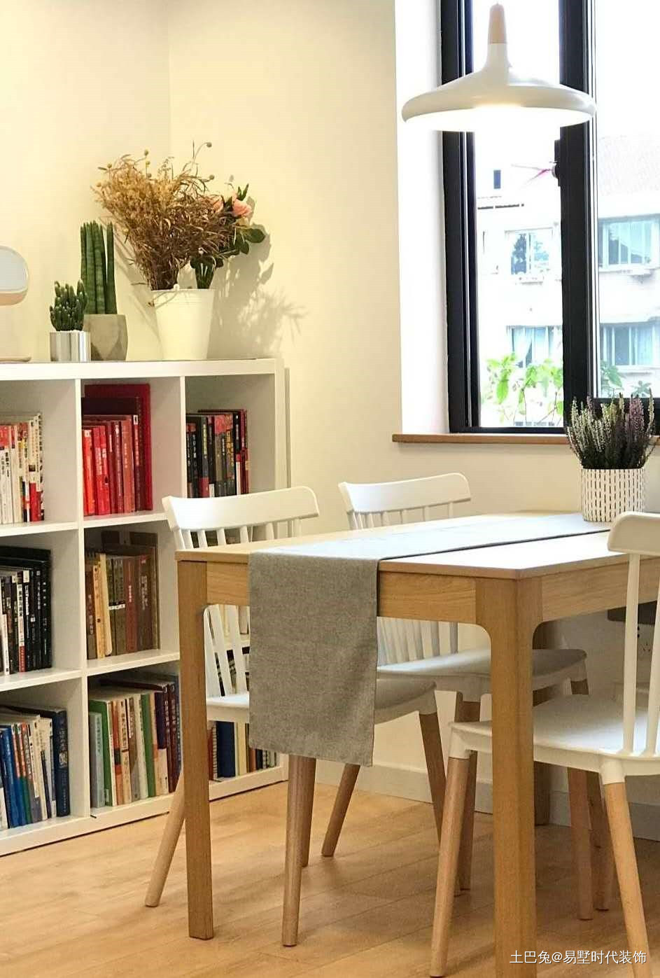 餐桌靠窗,窗台木给人温暖触感